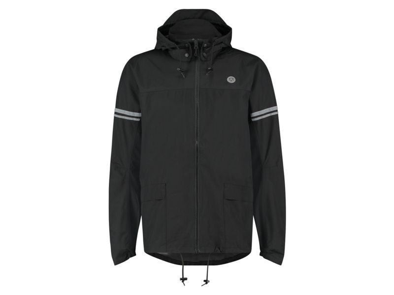 De volledig getapete naden en dubbele YKK-ritsen voorkomen dat water via de naden of ritsen binnendringt. De verlengde voorzijde van de mouwen biedt extra bescherming tegen regen, terwijl de mouwen bij de pols volledig afsluitbaar zijn tegen wind en water. Voor extra veiligheid is de jas voorzien van reflecterende elementen, zodat je goed zichtbaar blijft in het verkeer, ook in het donker.