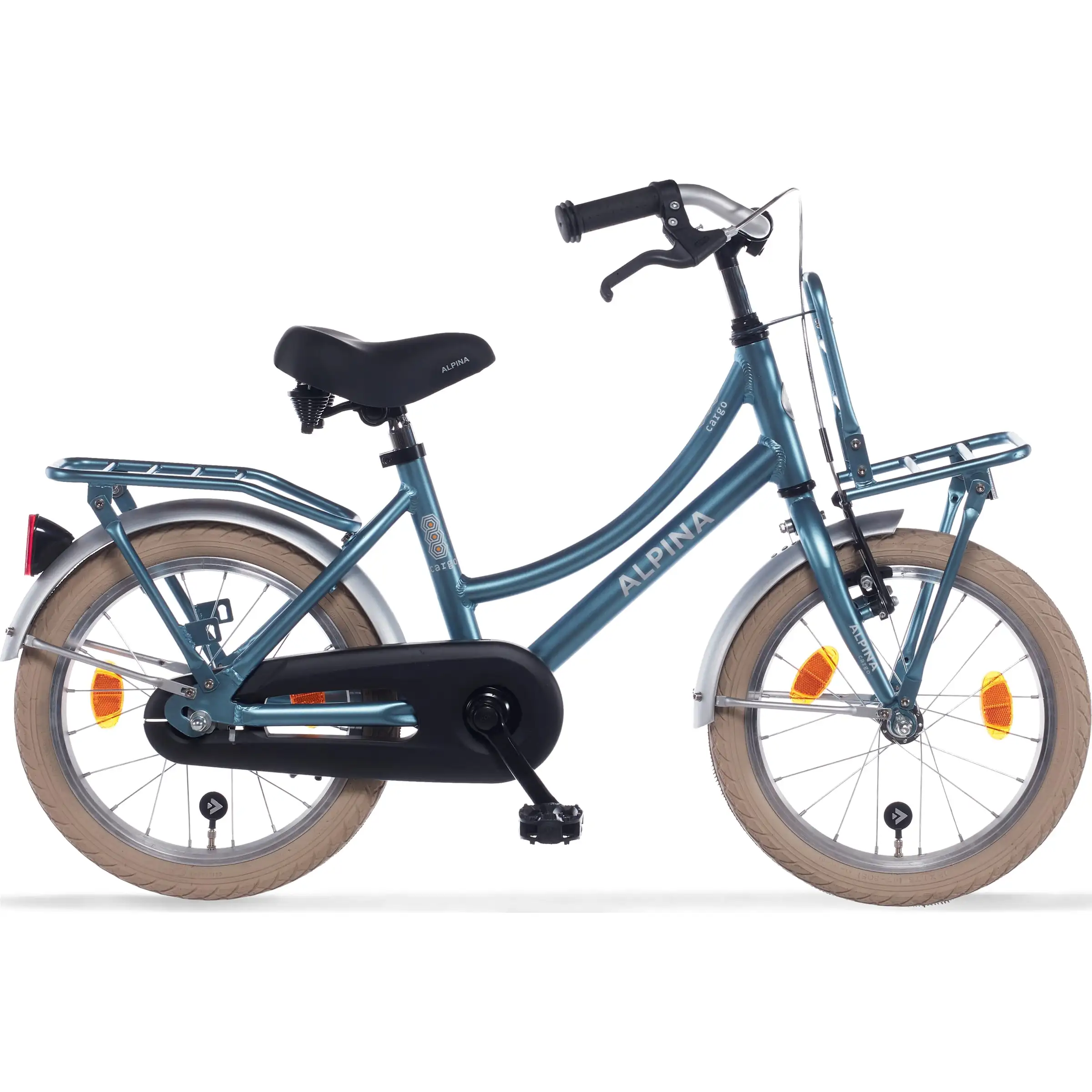 De Alpina Cargo 16 inch is een robuuste kinderfiets die speciaal is ontworpen voor dagelijks gebruik en kleine avonturen. Deze fiets heeft een stevig stalen frame met een lage instap, waardoor op- en afstappen eenvoudig is voor jonge fietsers. De kenmerkende voordrager maakt deze cargo fiets extra praktisch, ideaal voor het meenemen van een tas of andere spullen. De Alpina Cargo is uitgevoerd met een terugtraprem in combinatie met een handrem voor, wat zorgt voor betrouwbare en veilige controle tijdens het fietsen. Met een wielmaat van 16 inch is deze fiets geschikt voor kinderen met een kledingmaat van 104 tot 116 en een binnenbeenlengte vanaf 50 cm. De fiets heeft één vaste versnelling en een maximale belasting van 30 kg, wat bijdraagt aan de eenvoudige en onderhoudsvriendelijke opzet. De matte kleur Steel Blue geeft de fiets een stoere en tijdloze uitstraling. Dit betreft artikelnummer ACGM16SRM met EAN 8719461049900.