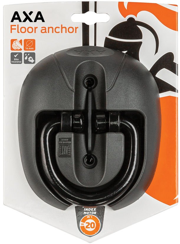 Het AXA muur/vloer anker zwart is geschikt voor montage op muur of vloer en kan binnen en buiten gebruikt worden, ART 4 sterren. Het muur-/vloer anker heeft een veilig gehard stalen plaat en een 14 mm diameter gehard stalen beugel. Het anker voldoet aan de Nederlandse ART 4 sterren norm en heeft goedkeur voor het afsluiten van een verzekering. Een slimme keuze voor de beveiliging van motor of scooter. Het AXA anker is uitgevoerd in een verfijnde grijze kleur. Bouten voor bevestiging worden bij het anker geleverd.