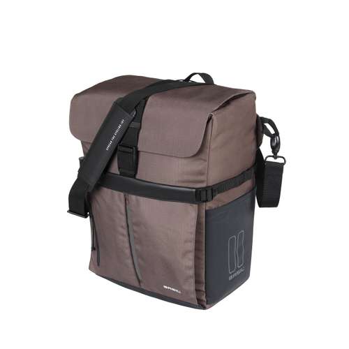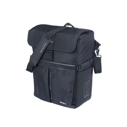 Basil Move Commuter fietslaptoptas, waterafstotend gerecycled polyester, gewatteerd labtopvak, elastische zijvakken, extra helmvak, ritsvakken, binnenvakken, afneembare schouderriem, waterafstotende regenhoes, MIK hooks, reflectie, 15L, zwart