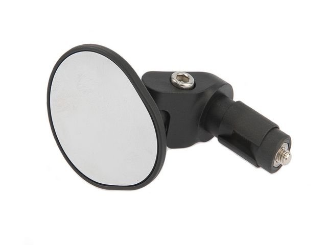 Mirage spiegel Minor, bar-end links of rechts, rond 50mm, stuurplug 17>21mm.zwart, spiegel verweert niet en is beveiligd bij breuk, Kleur glas: blauw vlak glas: vervormt het beeld niet