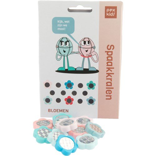 PexKids spaakkralen bloemetjes, 4 kleuren 12 stuks op kaart.