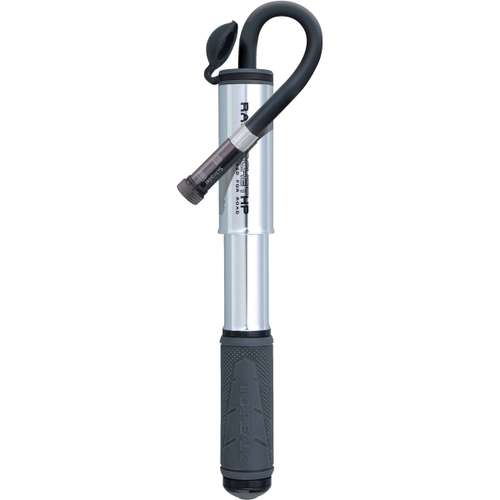 Topeak minipomp Race Rocket HP zilver, met slang voor frans en auto ventiel, lengte 18cm gewicht 78 gram 11bar ,incl bevestigingTRRHP1S