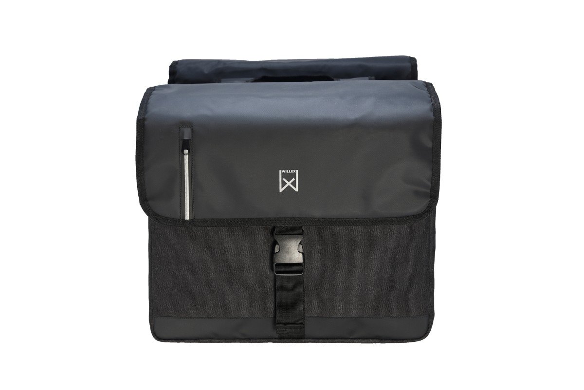 De Willex Dubbele Canvas Kantoortas 46L is gemaakt voor fietsers die hun werkspullen veilig en overzichtelijk willen meenemen tijdens woon-werkverkeer. Met een royale inhoud van 46 liter is er volop ruimte voor documenten, een laptop en dagelijkse essentials, terwijl de tas dankzij het stevige canvas materiaal zijn vorm behoudt bij intensief gebruik. De montage op de bagagedrager zorgt voor een stabiele ligging en comfortabel fietsen, ook wanneer de tas goed gevuld is. Het strakke zwarte ontwerp geeft een professionele uitstraling en past moeiteloos bij stadsfietsen en e-bikes.